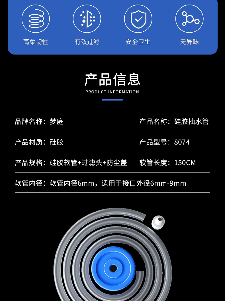 梦庭 抽水管茶台吸饮水机上水管茶水管桶装水软管1.5米
