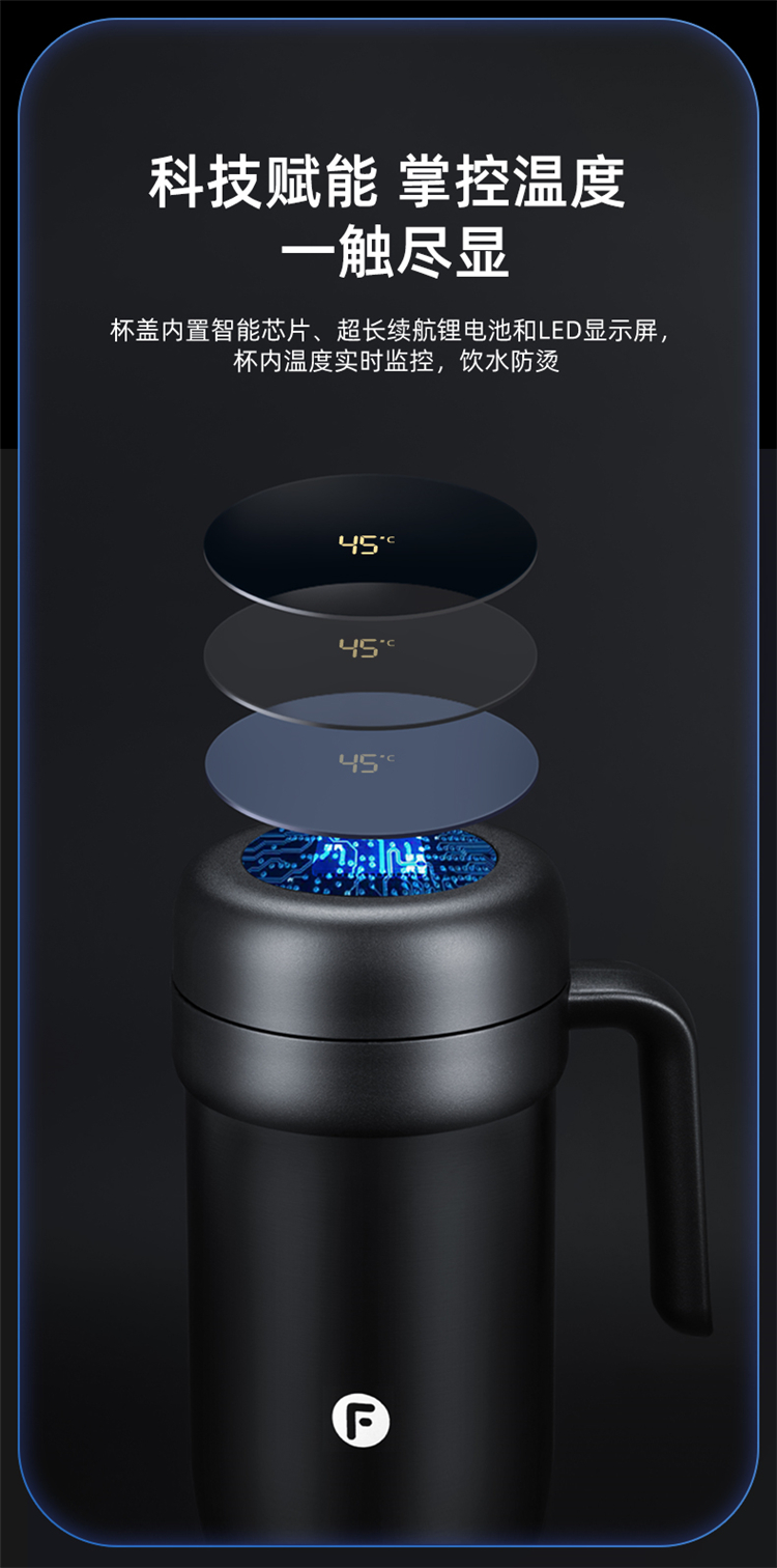 富光 WFZ1189-580B 梦想家显温办公杯 316不锈钢智能显温水杯 单位:只